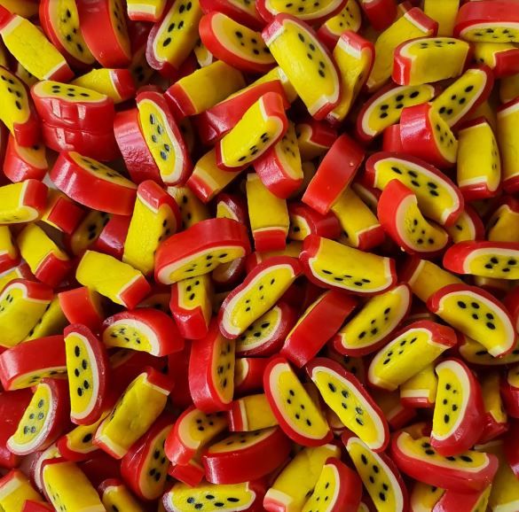 Vidal Passionfruit Slices are chewy, gummy candies bursting with the tangy sweetness of tropical passionfruit.