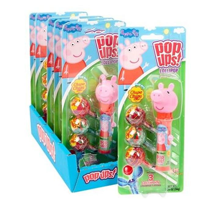 Shes Peppa Pig! *snort* Now in a fun Pop-Up format! Each one contains one Pop Up and three Chupa Chups lollipops. Pop your lollipop into the Pop Up, push and lick, and then store away for later!