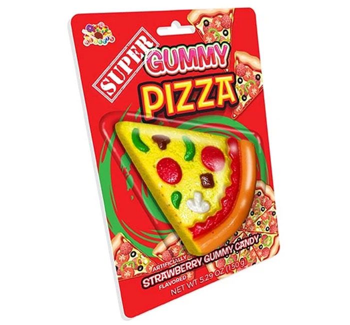 Enjoy your pizza and candy at the same time! This super-sized gummy pizza slice comes in a delicious strawberry flavor for a unique gummy treat that serves as a great novelty gift for friends or family (or yourself!).