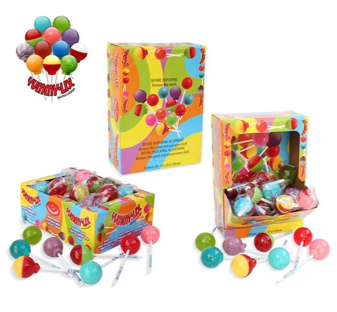 Cima Confection’s Yummy Lix lollipops are a flavorful and delightful treat for everyone to enjoy. All Yummy Lix gourmet lollipops are gluten free and completely allergy free so everyone can have a taste. All 20 delicious dessert flavors and fruit flavors are produced in an allergen-free environment, so there is absolutely no risk. Yummy Lix lollipops are free of nuts, eggs, gluten and lactose, making them pure sweetness everyone will love. Each of the unique flavors contain its own special recipe of ingredients to make the burst of flavor inside. Thanks to their bold, sweet flavors and easily digestible ingredients, Yummy Lix lollipops will not upset any food sensitivities or allergies and customers of all ages are sure to find a flavor they will love. Assorted Yummy Lix succulent flavors. Smooth mouth feeling 1oz lollipops. Flavor Mix may vary: Apple, Banana Split, Blue Raspberry, Bubble Gum, Cherry Lemonade, Cotton Candy, Wild Cherry, Watermelon, Grape.