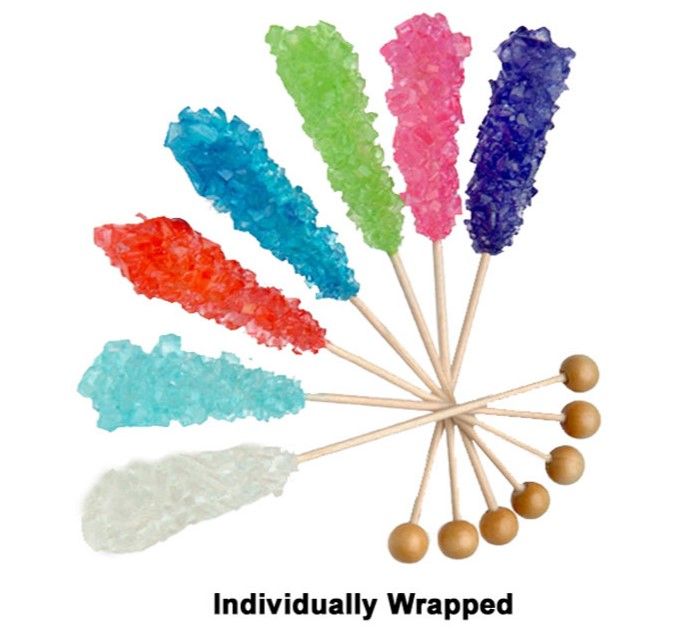 Add these beautiful, artisan-crafted rock candy to your next party to make things a little sweeter and add a fun, colorful touch that’s sure to impress. Truly taste all the colors of the rainbow with White Natural, Blue Raspberry, Cherry, Strawberry, Grape, Watermelon, and Cotton Candy rock candy. Perfect for any occasion or reason, whether you’re hosting an annual party, bridal or baby shower, wedding, or just wanting a fun way to decorate your baking project or dessert spread.