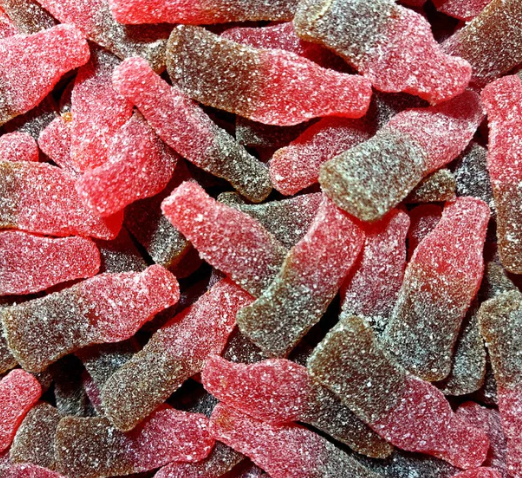 Fizzy cherry cola flavour gummy bottles