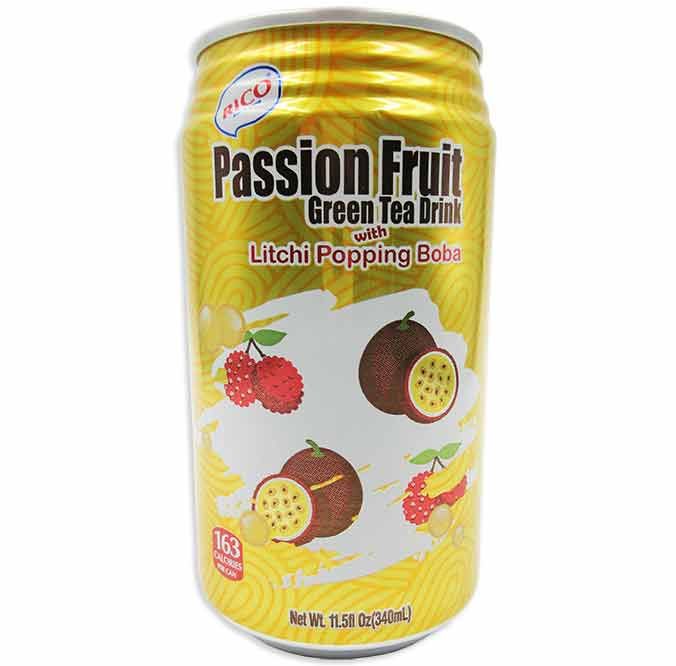 RICO PASSION FRUIT GREEN TEA DRINK WITH LITCHI POPPING BOBA. best before 11.25
