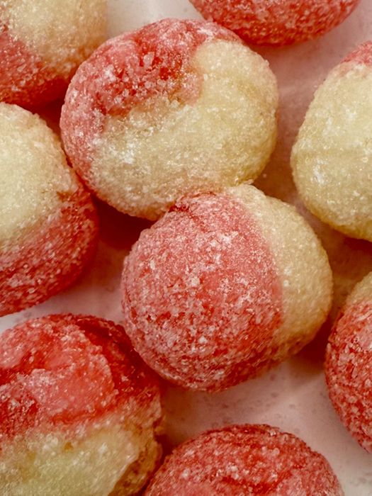 Classic British hardboiled sweets. Strawberry & cream flavour.