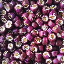 Hard boiled boysenberry flavoured rock candies.