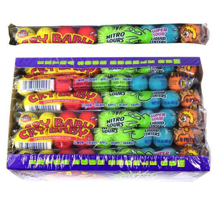 Cry Baby Nitro Sour Gumballs are an even MORE sour experience, sure to make your mouth pucker and your eyes water! These gumballs come in five intensely sour flavors: Sour Lemon, Sour Cherry, Sour Apple, Sour Berry, and Sour Orange.