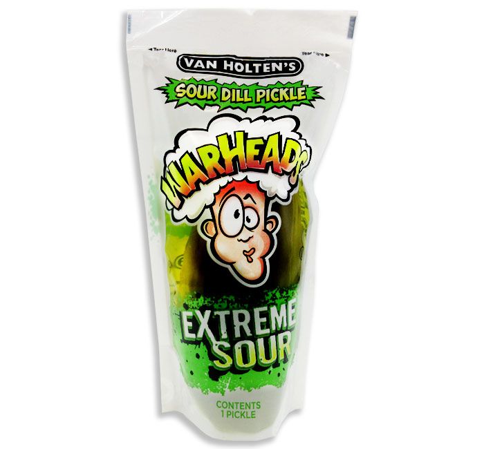 Classic Van Holtens pickles meet the taste of Warheads candy! These pickles are enhanced with the explosive flavor of everyones favorite sour candy, guaranteed to make your mouth pucker and your eyes water.