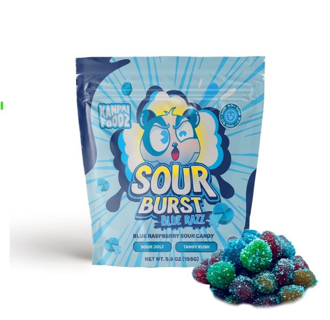 Get ready for a flavor explosion with Kanpai Foodz' Blue Razz Sour Burst! They are gushing with flavor! These gummies are coated with a blue razz sugar mix that is super tangy and will have your tastebuds going wild.