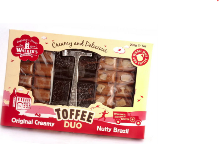 Two of Walkers best selling 100g Toffee Bars and a novelty Walker’s Nonsuch hammer for breaking the bars into bite size pieces….