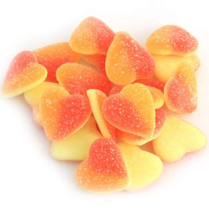 Tangy peach flavoured gummys with a sour kick! Colour may vary.