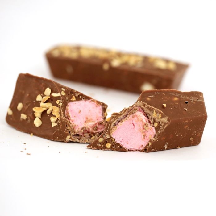 Indulge yourself in homemade chocolate goodness! Our Peanut Butter Rocky Road is made with milk chocolate, crunchy peanut butter, roasted peanuts, yummy marshmallows and toasted shredded coconut. Every bite is absolutely delightful! Each piece is hand cut to approximately 80g.