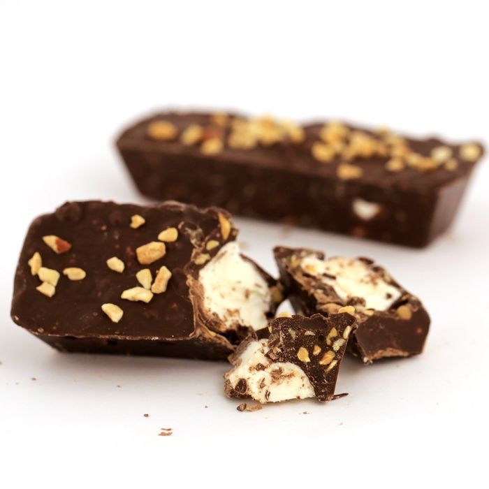 Indulge yourself in homemade chocolate goodness! Our Dark Chocolate Rocky Road is made with dark chocolate, roasted peanuts and yummy marshmallows. Every bite is absolutely delightful! Each piece is hand cut to approximately 80g.