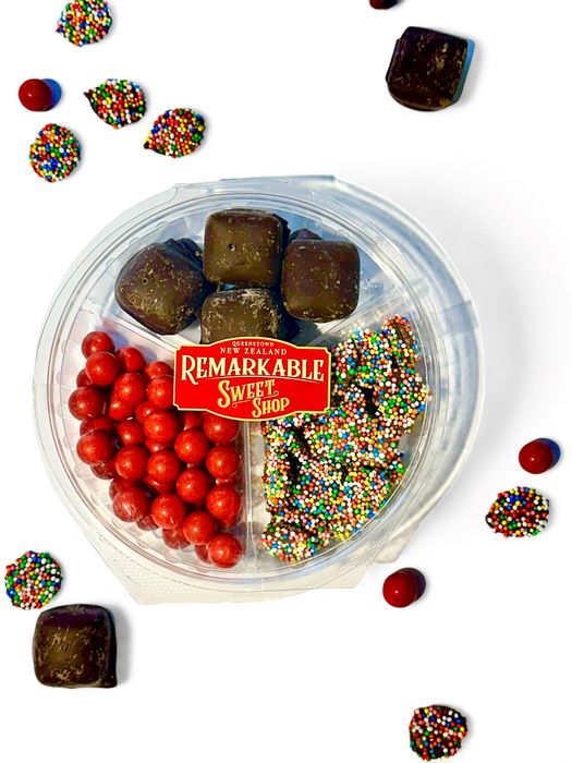This Choc Clock Gift Tray is filled with our favourites - Chocolate Caramels, Choc Drops, Choc Fruit & Nut Mix. Get one and share it with everyone!