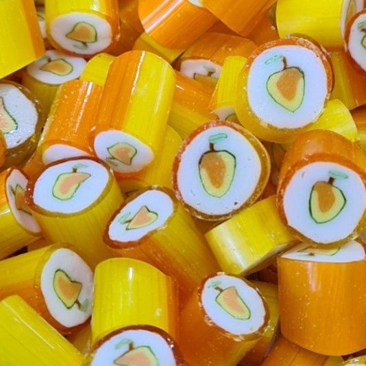 Hard boiled mango flavoured rock candies.