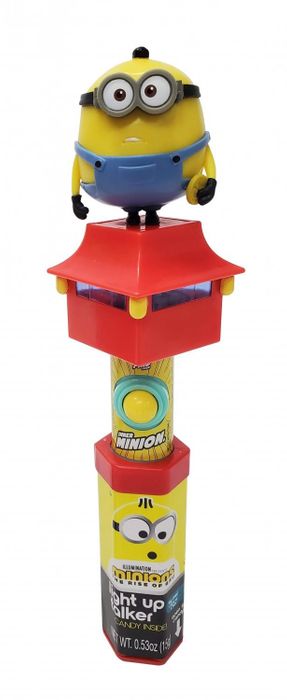 Press the button to hear the Minions talk as the base lights up. In the handle you will find 15g fruit flavoured pressed dextrose candy.