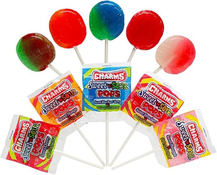 Charms SweetNSour Pops are the perfect flavor combination. These delicious lollipops come in five fun flavours: Sweet Strawberry & Sour Lemonade; Sweet Cherry & Sour Green Apple; Sweet Blue Razz Berry & Sour Watermelon; Sweet Pineapple & Sour Grapefruit; Sweet Mango & Sour Tangerine!