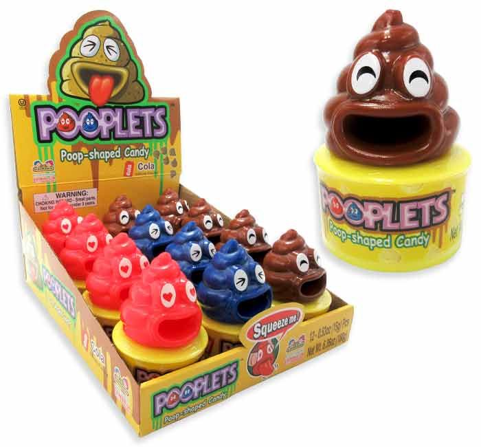 These candy containers provide loads of fun both inside and out! The base holds a handful of cola-flavored, poop-shaped candies; the top is a squeezable poop toy that sticks out its tongue with each playful squeeze. Enjoy the sweet snack and endless laughs!